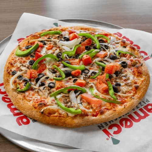 Fresh tomatoes, black olives, mushrooms, green peppers and onions